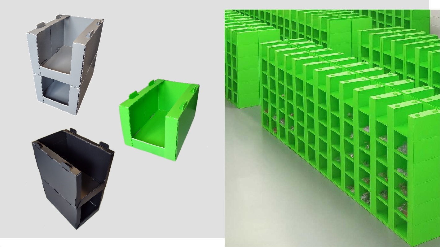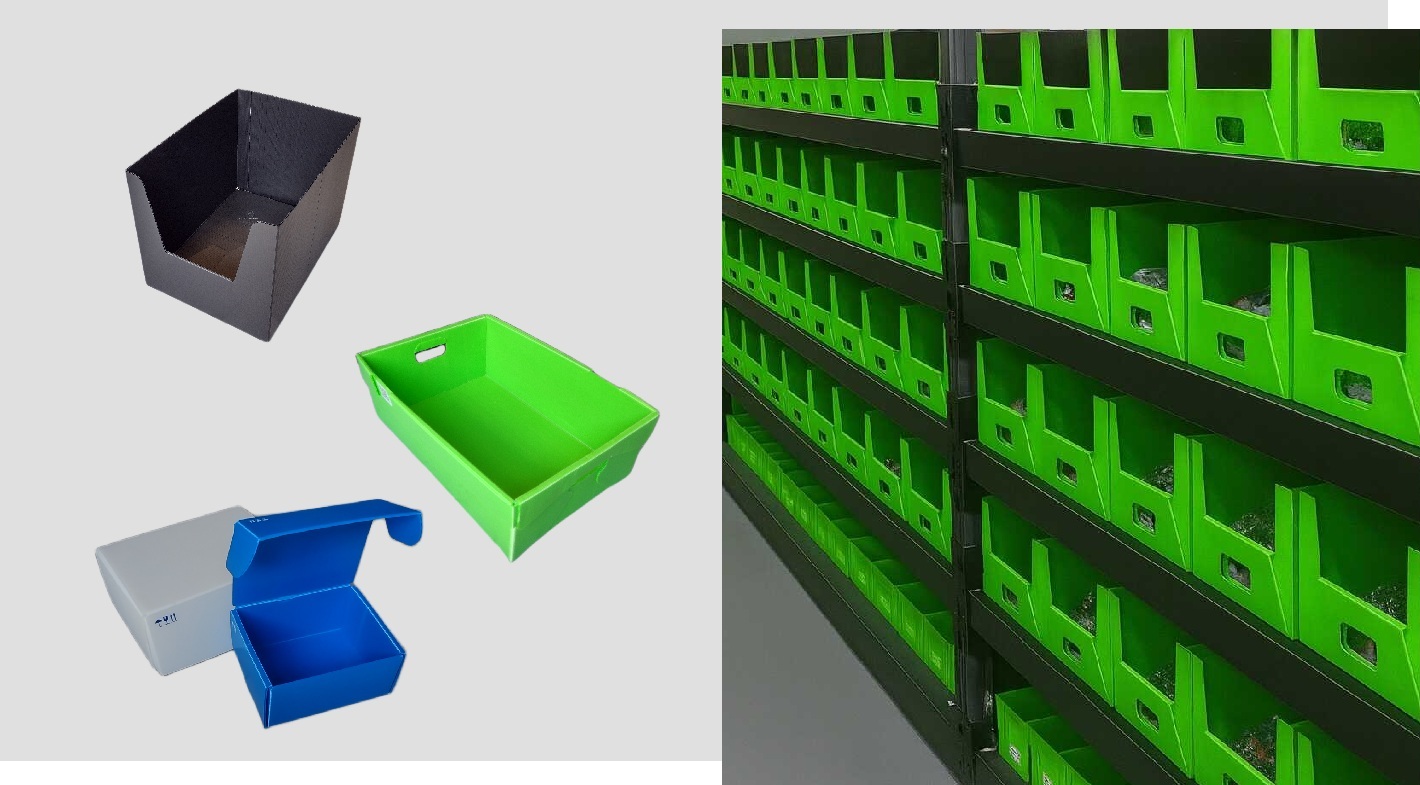 Wykorzystanie dedykowanych opakowań PP jako pojemniki kompletacyjne, systemy regałowe sztaplowane, skrzynki magazynowe i paczki transportowe, stanowi atrakcyjną ekonomicznie alternatywę dla mało wytrzymałych rozwiązań kartonowych i standardowych, produkowanych wtryskowo pojemników plastikowych do kompletacji.